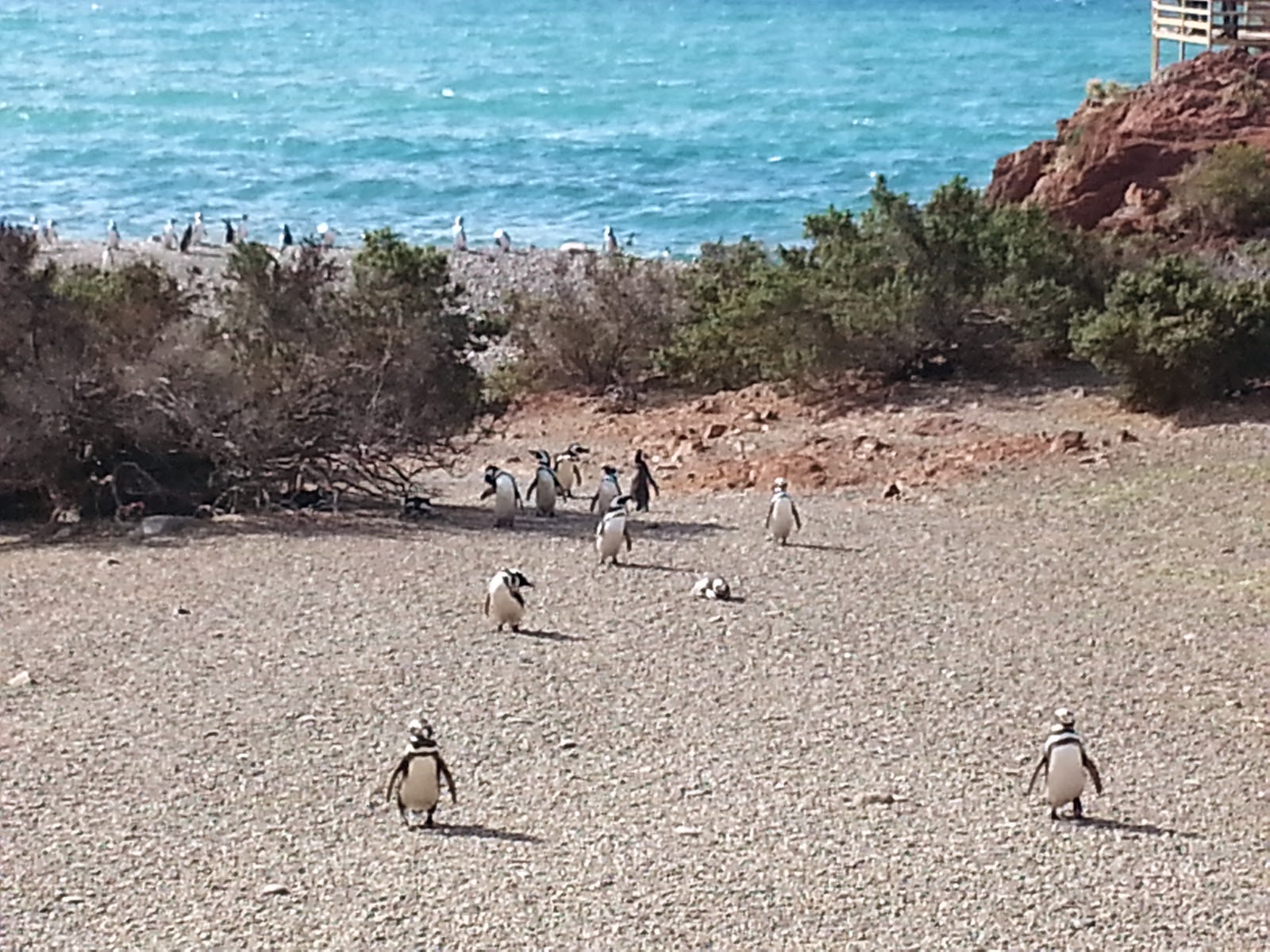 praia com direito a um mirante para desfrutar da paisagem com pinguins à beira