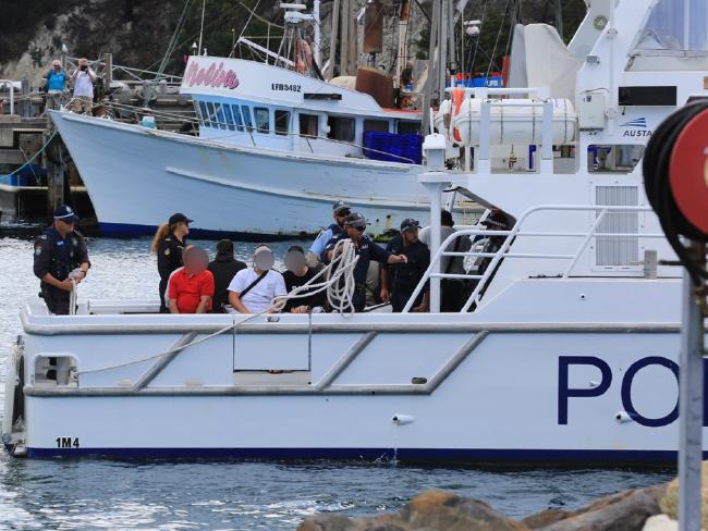 | Passageiros sendo retirados do navio pela polícia Foto Harold Sun/Reprodução |