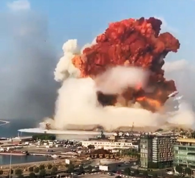 Imagens impressionantes mostraram uma bola de fogo sobre a região portuária pouco depois de uma forte explosão, que cobriu o céu com uma nuvem de cogumelos. O barulho teria sido ouvido em Chipre. Algumas testemunhas compararam a uma “bomba nuclear”.