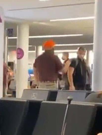 O vídeo de um passageiro (de camisa preta) sendo impedido de embarcar, provavelmente no aeroporto de Washington DC, viralizou nas mídias sociais.