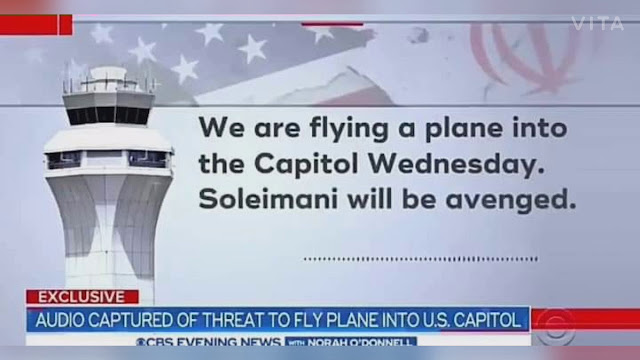 A tensão nos EUA, que já está grande, foi elevada às alturas: a CBS News divulgou que o Irã estaria planejando jogar um avião contra o prédio do Capitólio, em Washington DC, nesta quarta-feira (6), dia em que o Congresso se reúne para certificar as eleições presidenciais.