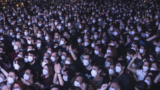 Vídeos que circularam nas mídias sociais mostravam milhares de pessoas pulando junto com a música e centenas agrupados em espaços apertados.