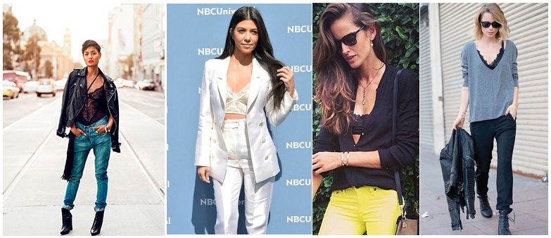 Além da clássica combinação com saias e vestidos, surge na versão ¾ e também por