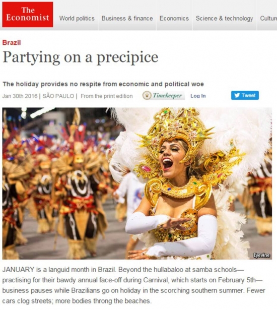 Os estrangeiros tentam entender o Brasil – é difícil! Nesta quinta-feira (28), a revista britânica The Economist, em sua edição semanal, disse no título que o país está “festejando o Carnaval no precipício”. É forte, não? Mas, a publicação está, por acaso, mentindo ou sendo tendenciosa?