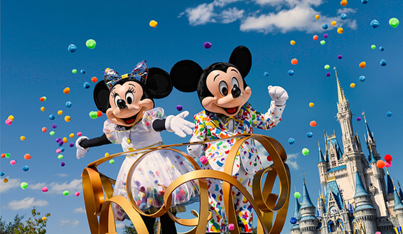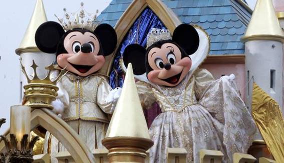 Parece casamento? Mas não, eles surgiram assim de branco e dourado para celebrar os 50 anos da Disneylândia, o primeiro parque do universo Disney em Anaheim, na Califórnia, em 2005.