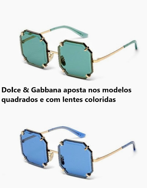O destaque da Dolce & Gabbana é este modelo que lembra um pouco as gemas preciosas. A armação fina em metal é complementada por ponteiras que combinam com as cores das lentes. Disponível em rosa, azul e verde. Custa R$ 2.120