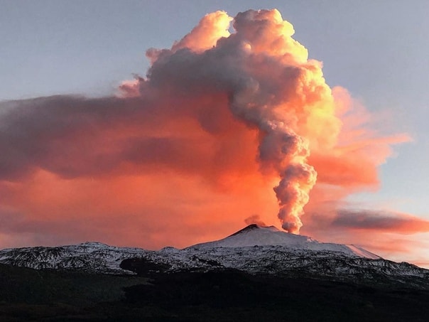 A erupção do vulcão Etna, na Sicília, sul da Itália, considerado o maior da Europa, continua intensa. Nesta quinta-feira, dia 27, grandes quantidades de cinzas e gás foram liberadas na atmosfera. A imagem com muitas colunas de fumaça tingindo o pôr do sol é assustadora!