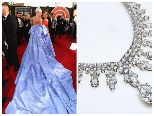 O vestido de Lady Gaga, em tom lavanda e com aquela imensa cauda que cobria todo o tapete vermelho, roubou a cena na premiação do Globo de Ouro 2019. Mas, ela estava muito mais poderosa do que aparentava: o delicado colar exibido em seu pescoço tinha 300 diamantes brilhantes, incluindo um de 20 quilates em formato de pêra no centro da joia.