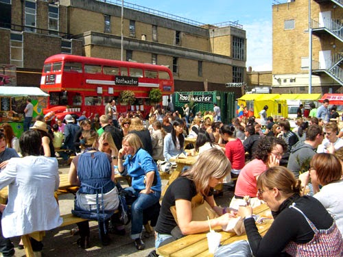 vendedores de comida de rua. É um dos meus lugares favoritos de Londres.”