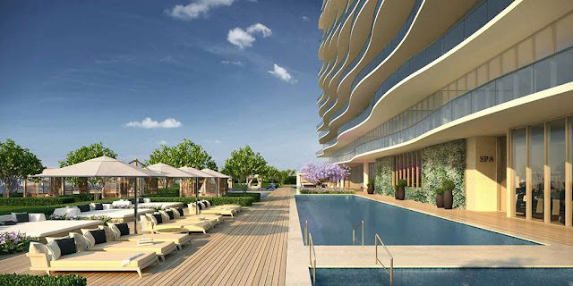Com uma vista incrível para o mar, o empreendimento tem duas piscinas entre jardins tropicais, rodeadas por camas para relaxamento e aromaterapia, spa com piscina térmica e lounge equipado com cozinha gourmet. Há também um restaurante privé para moradores e seus convidados, business center e até uma sala de cinema.