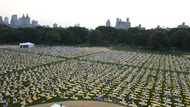 Vestidos de branco (a cor da paz e da serenidade), os novaiorquinos deitaram em colchões amarelos e viveram, segundo eles, uma verdadeira experiência espiritual. Foi a primeira vez que o yoga fest aconteceu no parque.