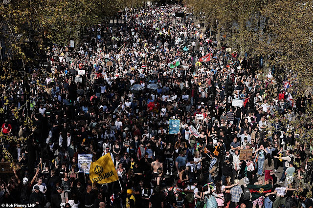 Neste sábado (24) ensolarado de primavera, milhares de pessoas tomaram as ruas de Londres em defesa de sua liberdade e contra as novas medidas relacionadas à pandemia, como o certificado obrigatório de vacina.