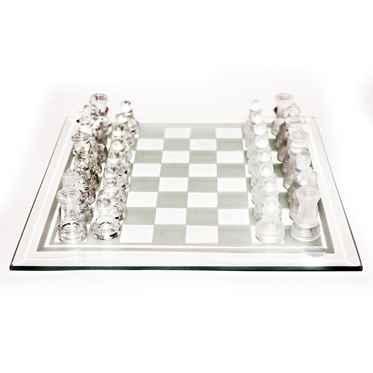 Glass Chess – Xadrez em vidro Peças em vidro brilhante para um jogador e fosco para o outro Contém 32 peças e tabuleiro em vidro