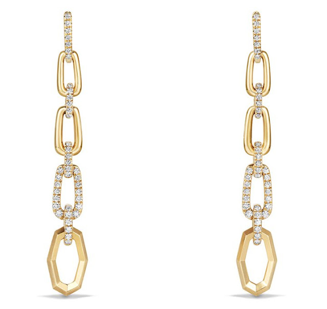 O par de David Yuman´s, em ouro 18 e diamantes, pode ser usado em dois tamanhos: longo terá 66 mm ou curto, 26 mm, de acordo com a ocasião. Isso se deve a um ajuste no fecho. Você escolhe.