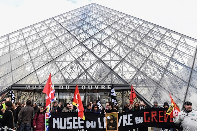 O movimento faz parte das várias manifestações que ocorrem no país contra a reforma da previdência de Emmanuel Macron. O museu informou que vai devolver o valor do ingresso aos visitantes.