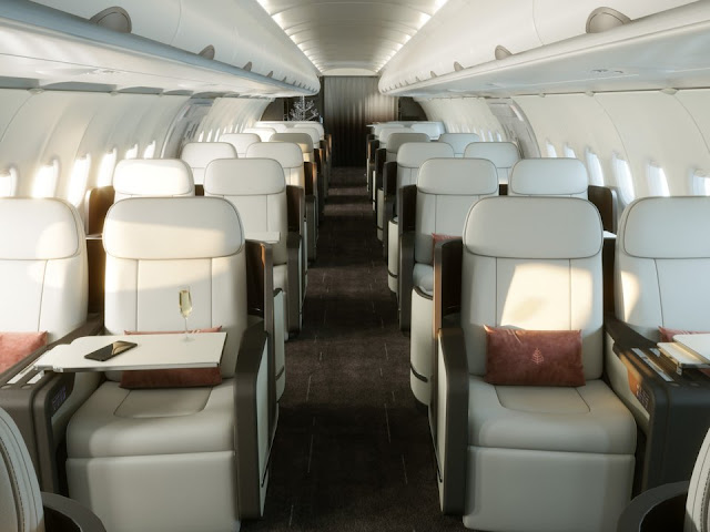 Segundo o site Bloomberg, as reservas serão abertas em meados de 2019 e o jato decolará no início de 2021, com capacidade para 48 privilegiados passageiros.
